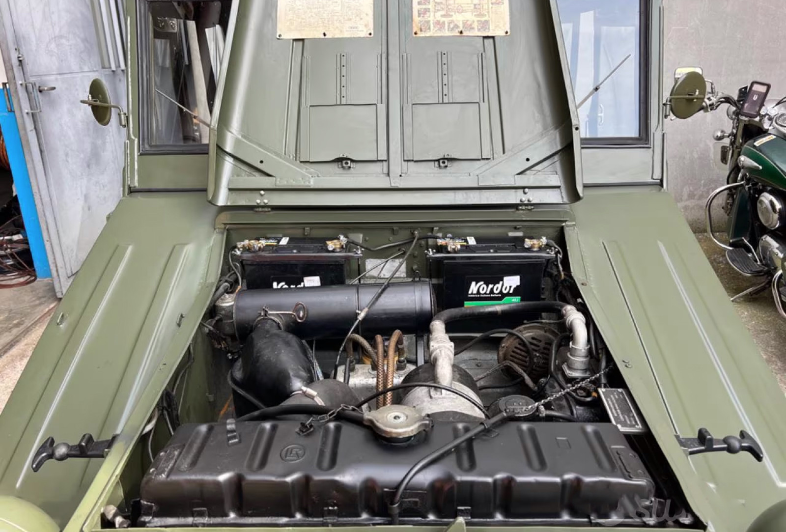 “Body off” restaured Munga 4. Everything new. Rare version with automatic oil mixer. Ex Dutch-Army. Many original gadgets. Ready to be driven.
